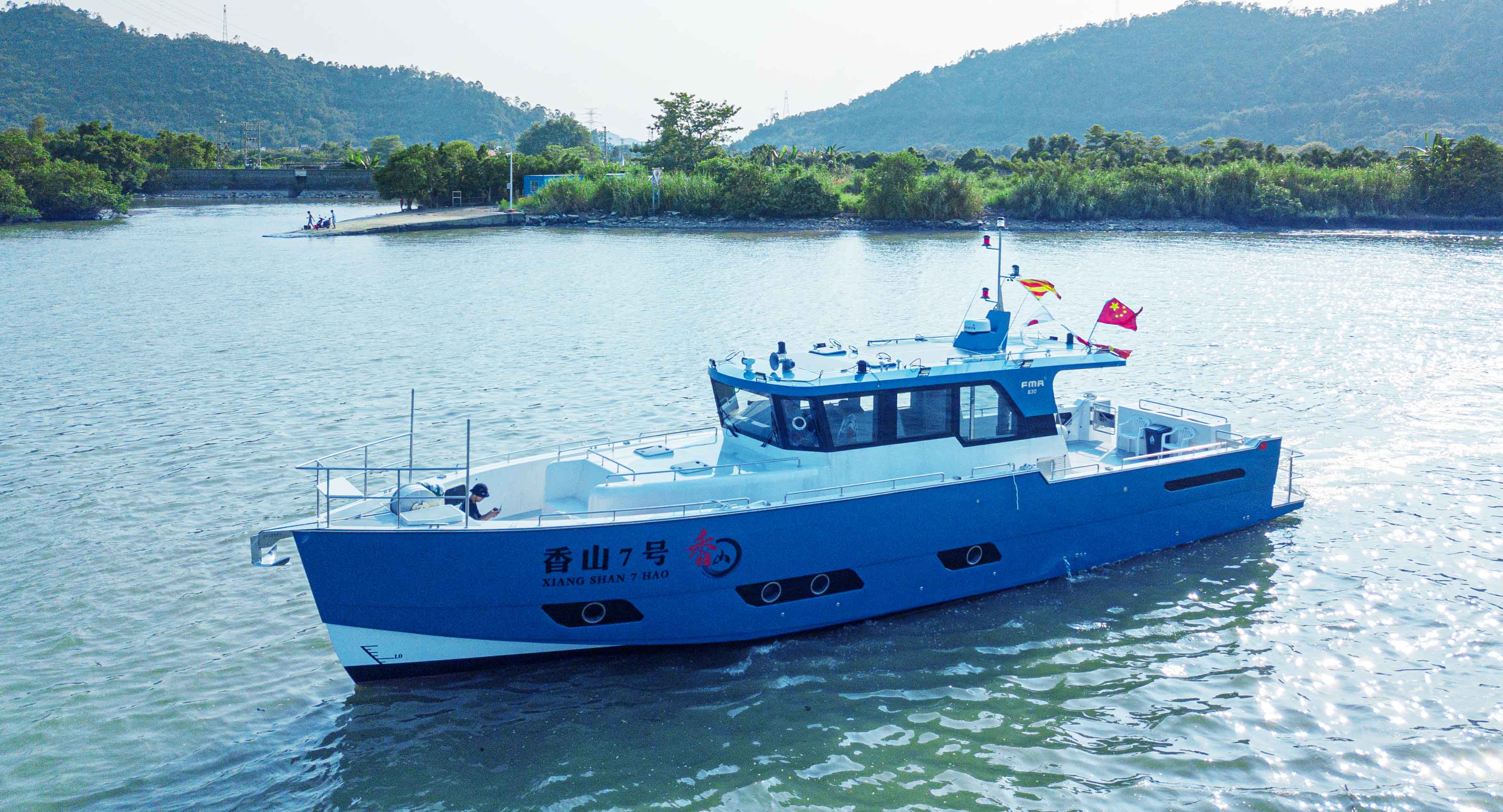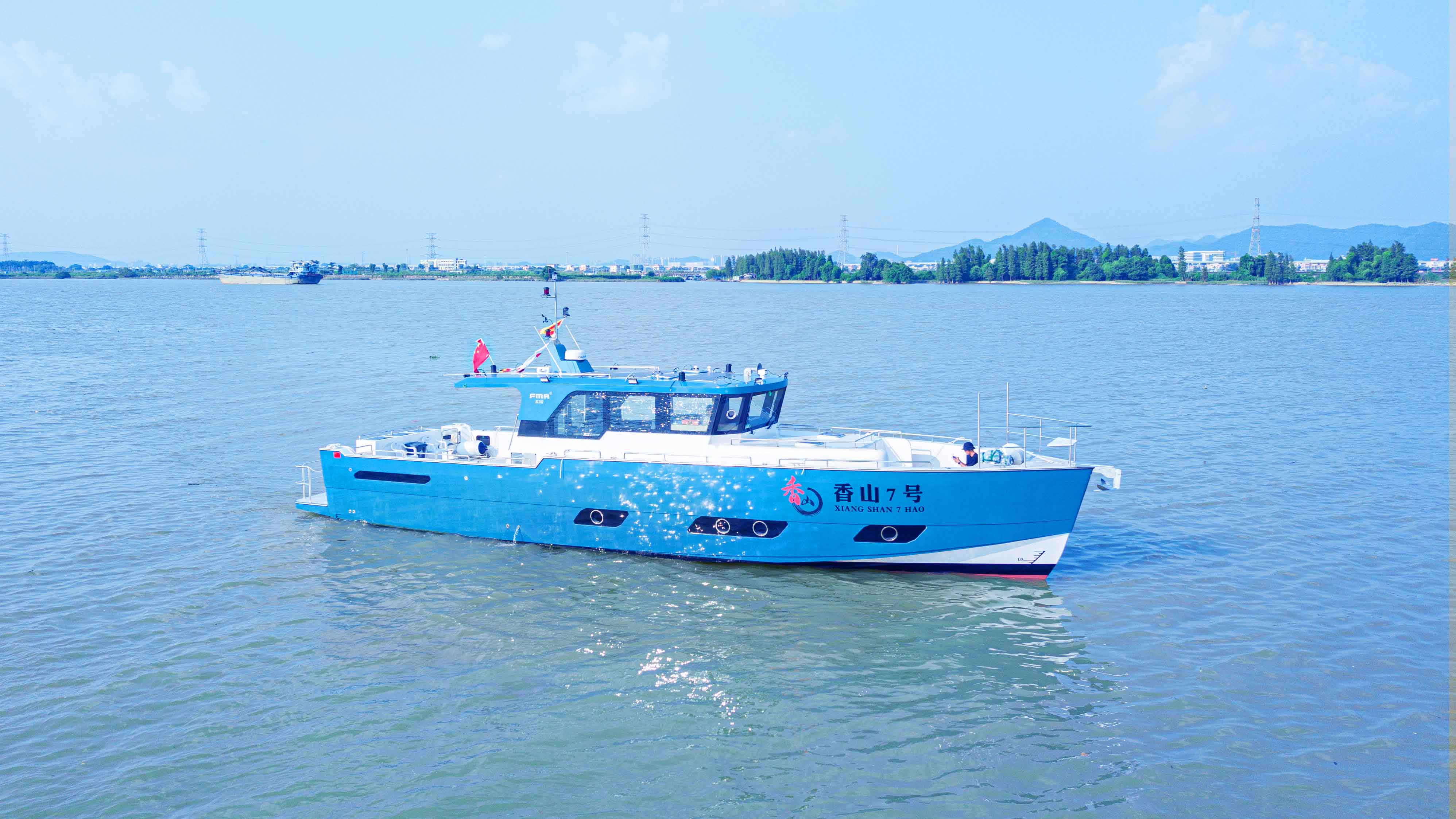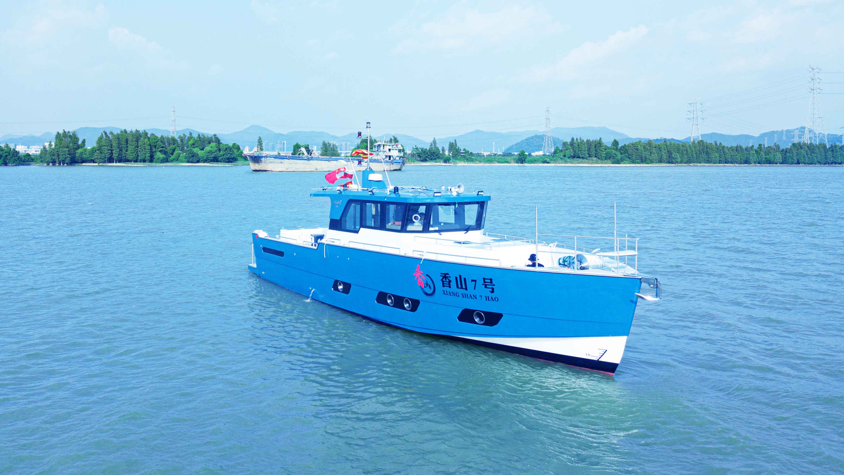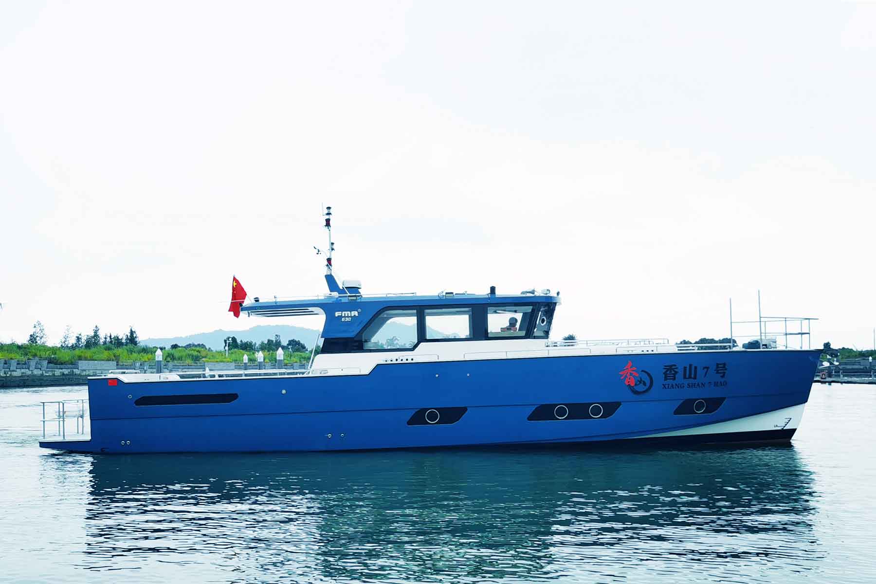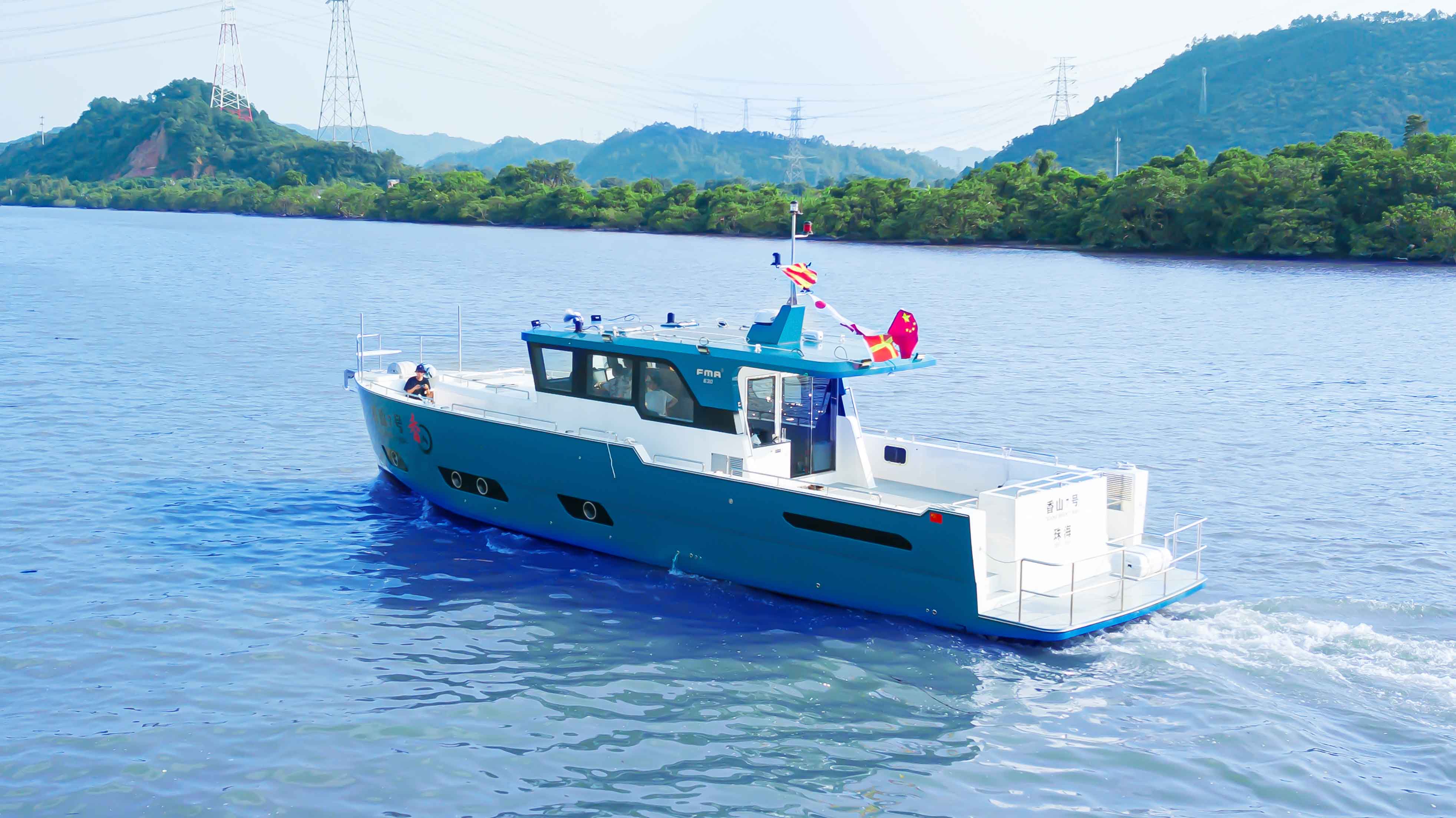 FMA630 is a CCS Class II offshore fishing yacht, with a total length of 19.1 meters, a length of 17.8 meters, a width of 5 meters, a depth of 2.18 meters, dual Yanmar 440 engines, 3,600 liters of oil, 400 liters of water, 12 one-meter-wide single beds, two 16-kilowatt generators, a speed of about 20 knots, an economic speed of about 16 knots, a Class II navigation area, a cruising range of at least 500 nautical miles, radar, side depth, fish finder, nautical chart, GPS, collision avoidance system, very high frequency, medium and high frequency, wireless position-indicating beacon, radar transponder, solar charging, electric winch, and a twelve-person life raft