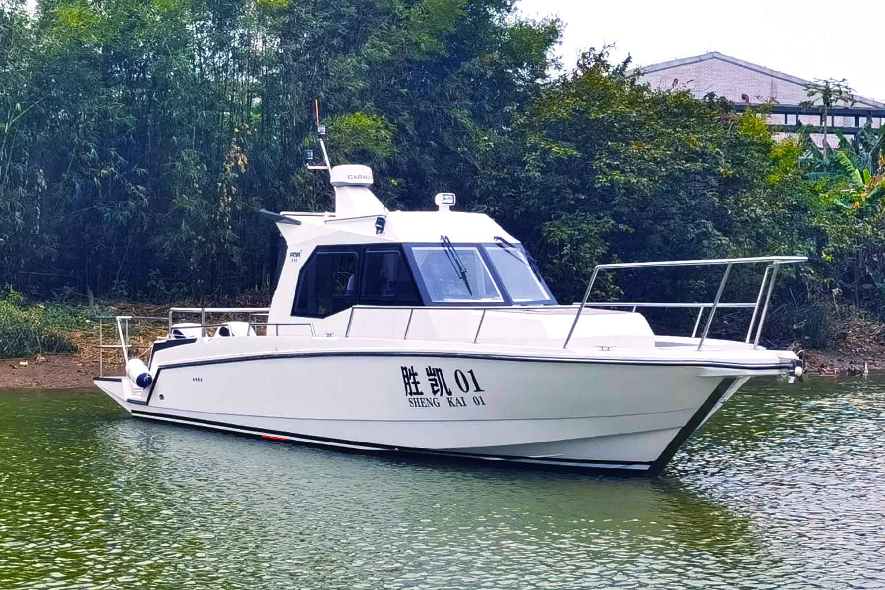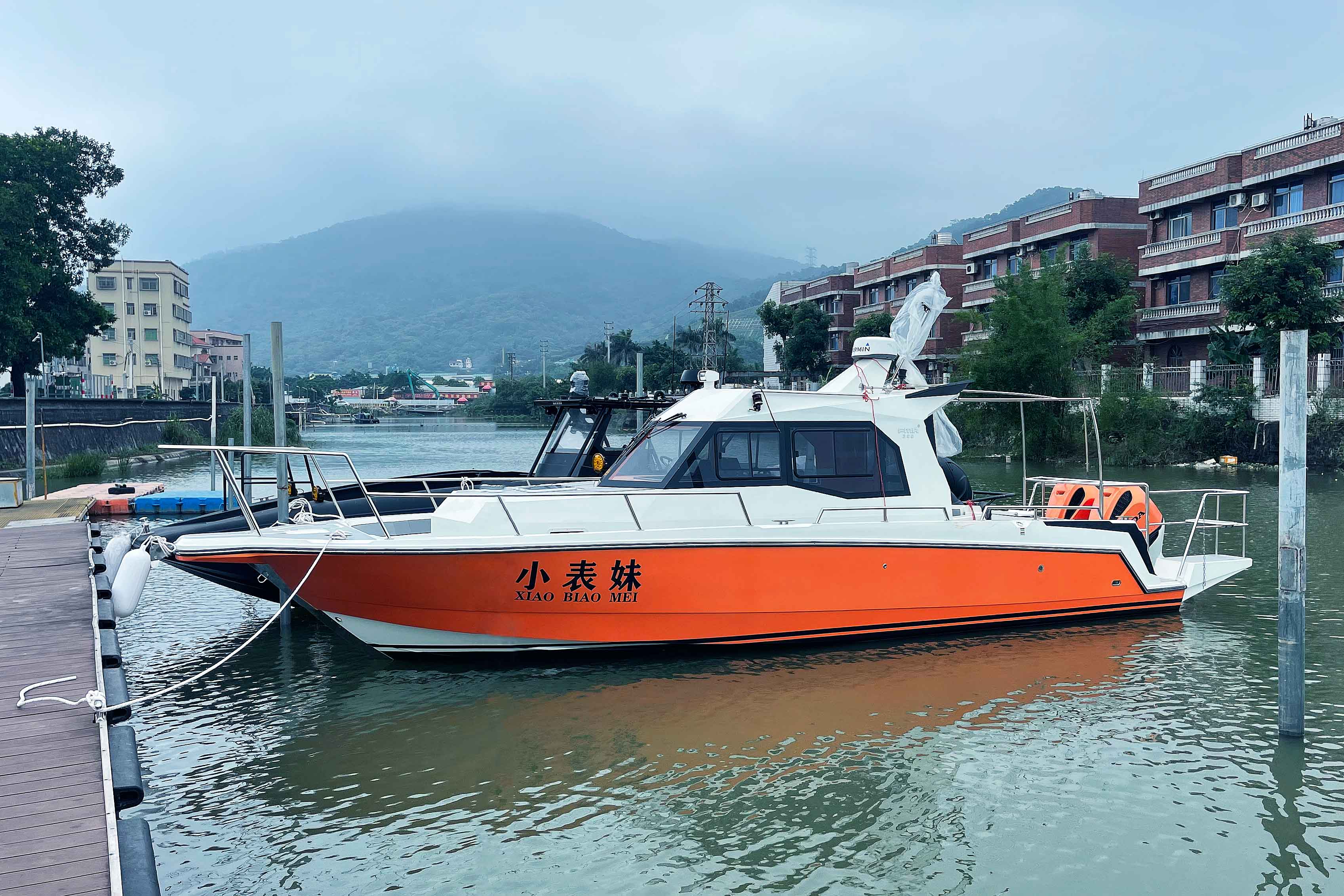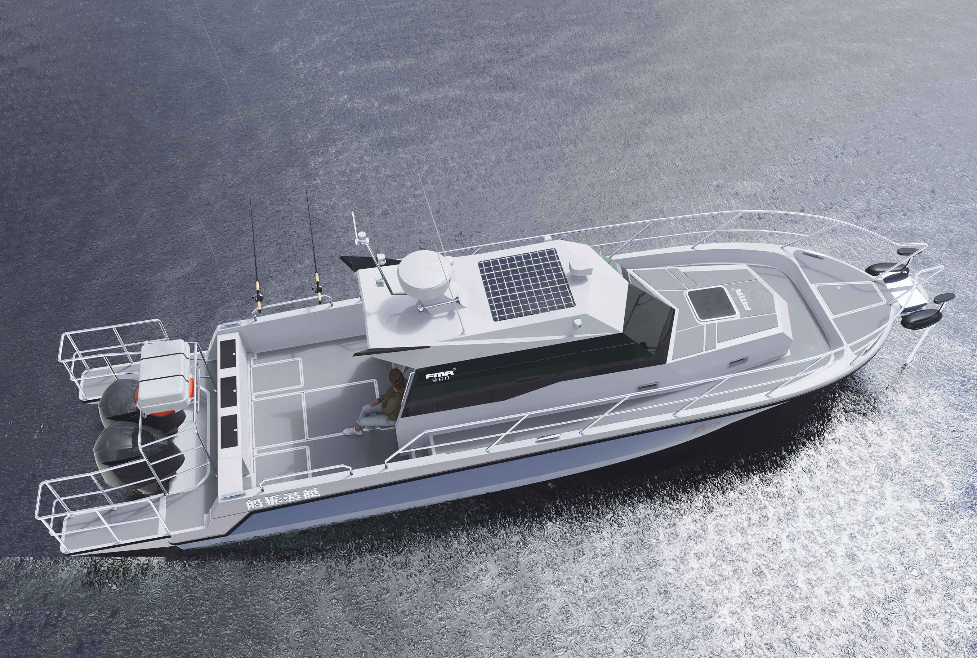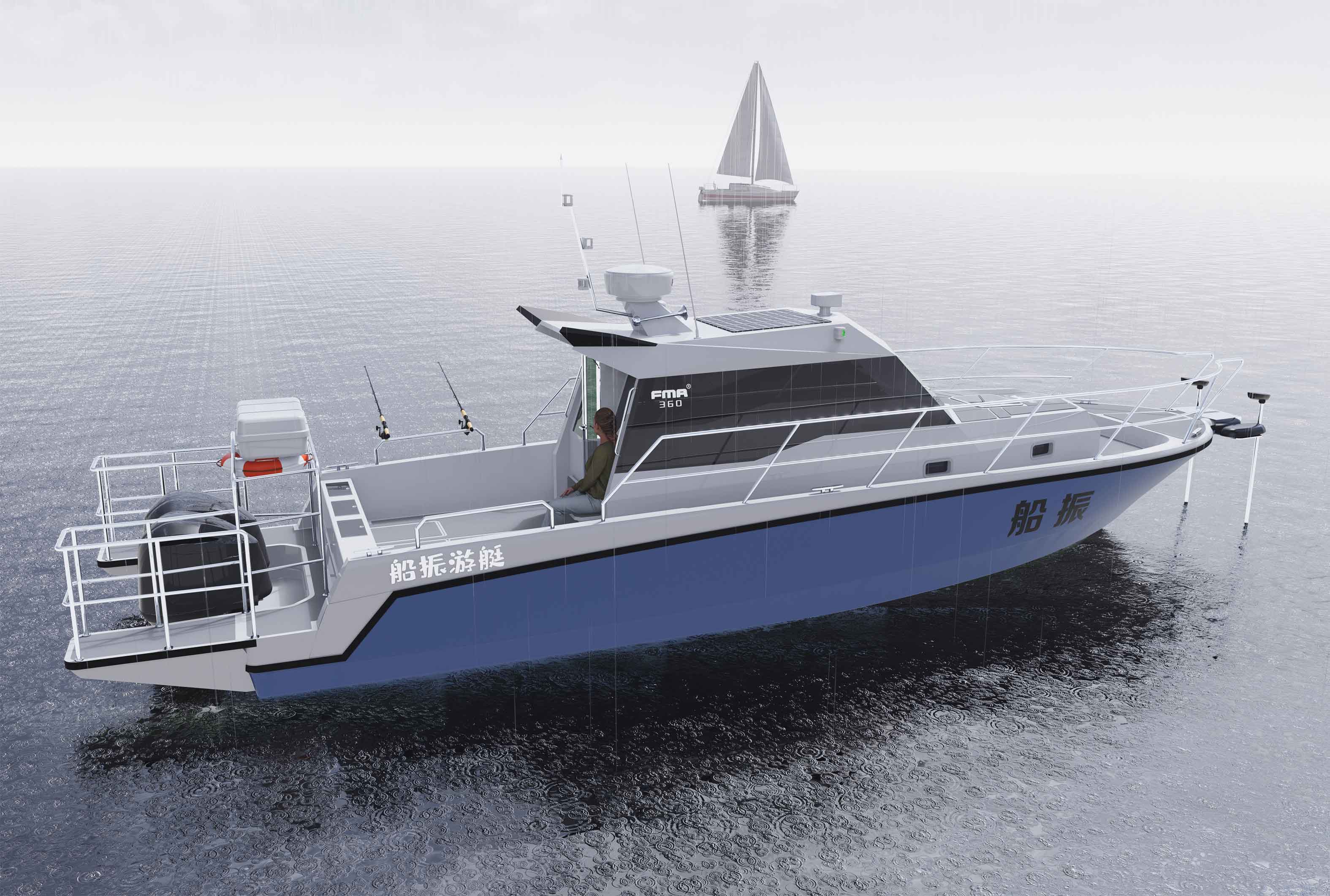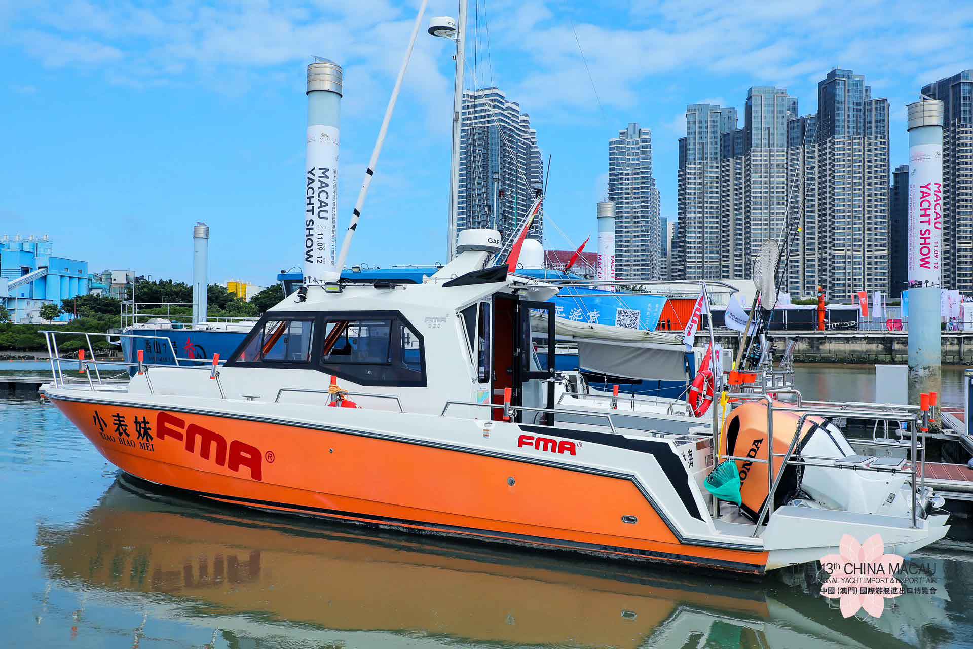 FMA360 is a CCS Category III yacht, 10.8 meters in length, 11.8 meters in length including the transom, 3 meters in width, 1.46 meters in depth, 1,000 liters of fuel tank, 200 liters of water tank, equipped with two imported 250 engines, speed of 35 knots. Radar, depth sounding, fish finder, nautical chart, GPS, VHF, wireless position-indicating beacon, radar transponder, solar charging, electric winch, extended transom, life raft.