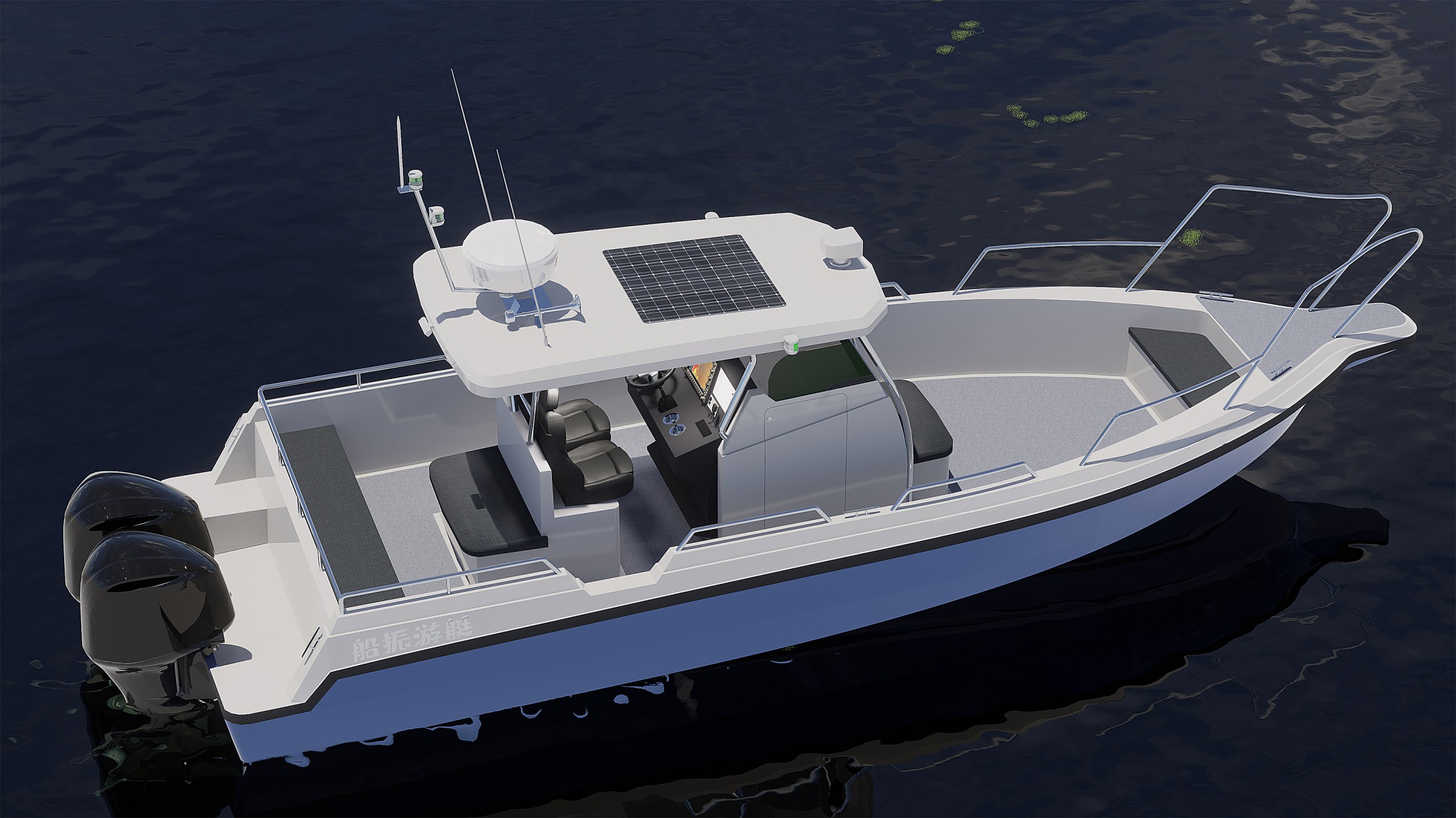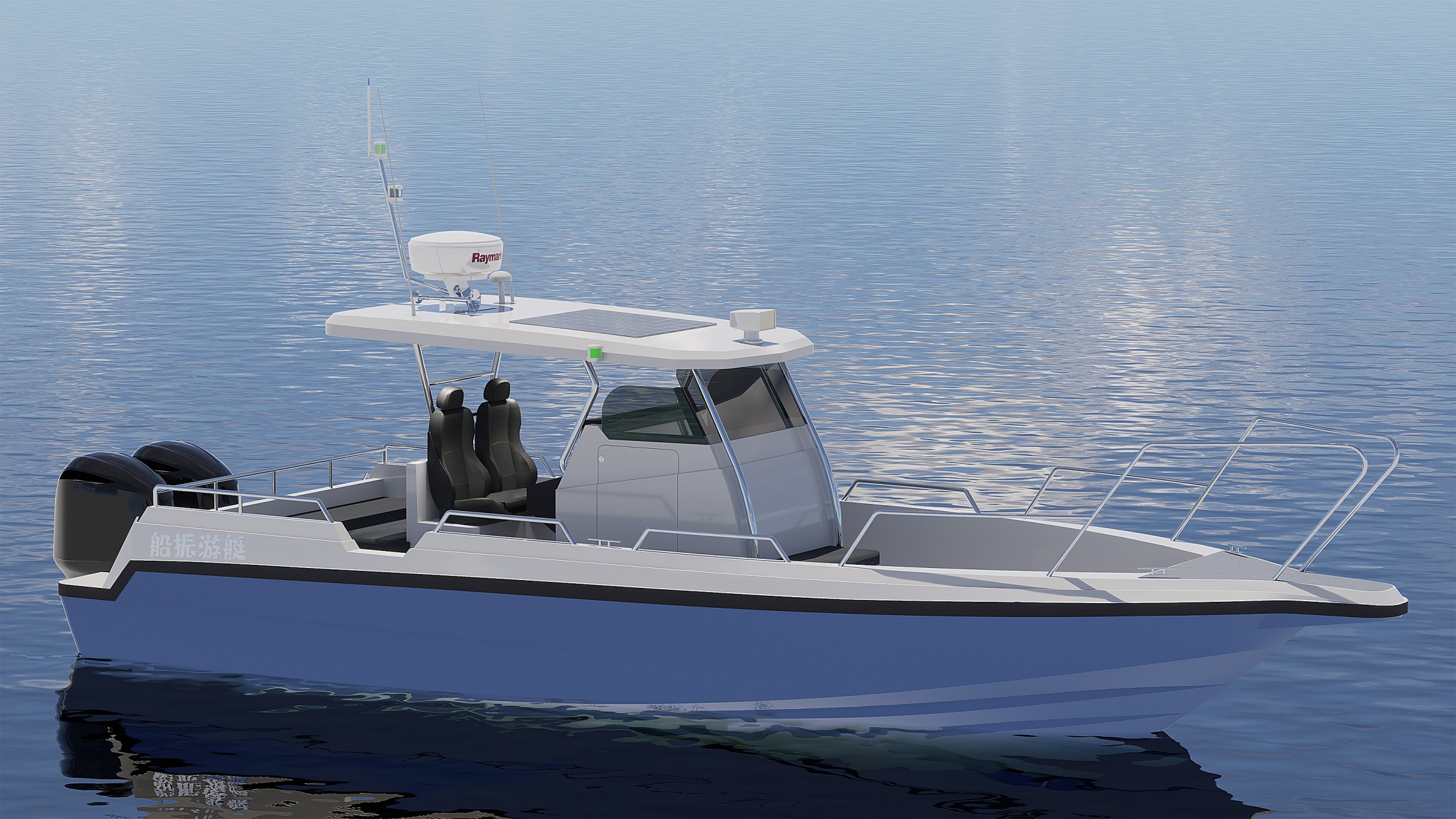 FMA300 is a CCS Category IV yacht, 9.2 meters in length, 2.8 meters in width, 1.66 meters in depth, 800 liters of fuel tank, 100 liters of water tank, equipped with two imported Honda 150 engines, speed 32 knots. Radar, depth sounding, fish finder, nautical chart, GPS, AIS, VHF, wireless position-indicating beacon, radar transponder, solar charging, electric winch.