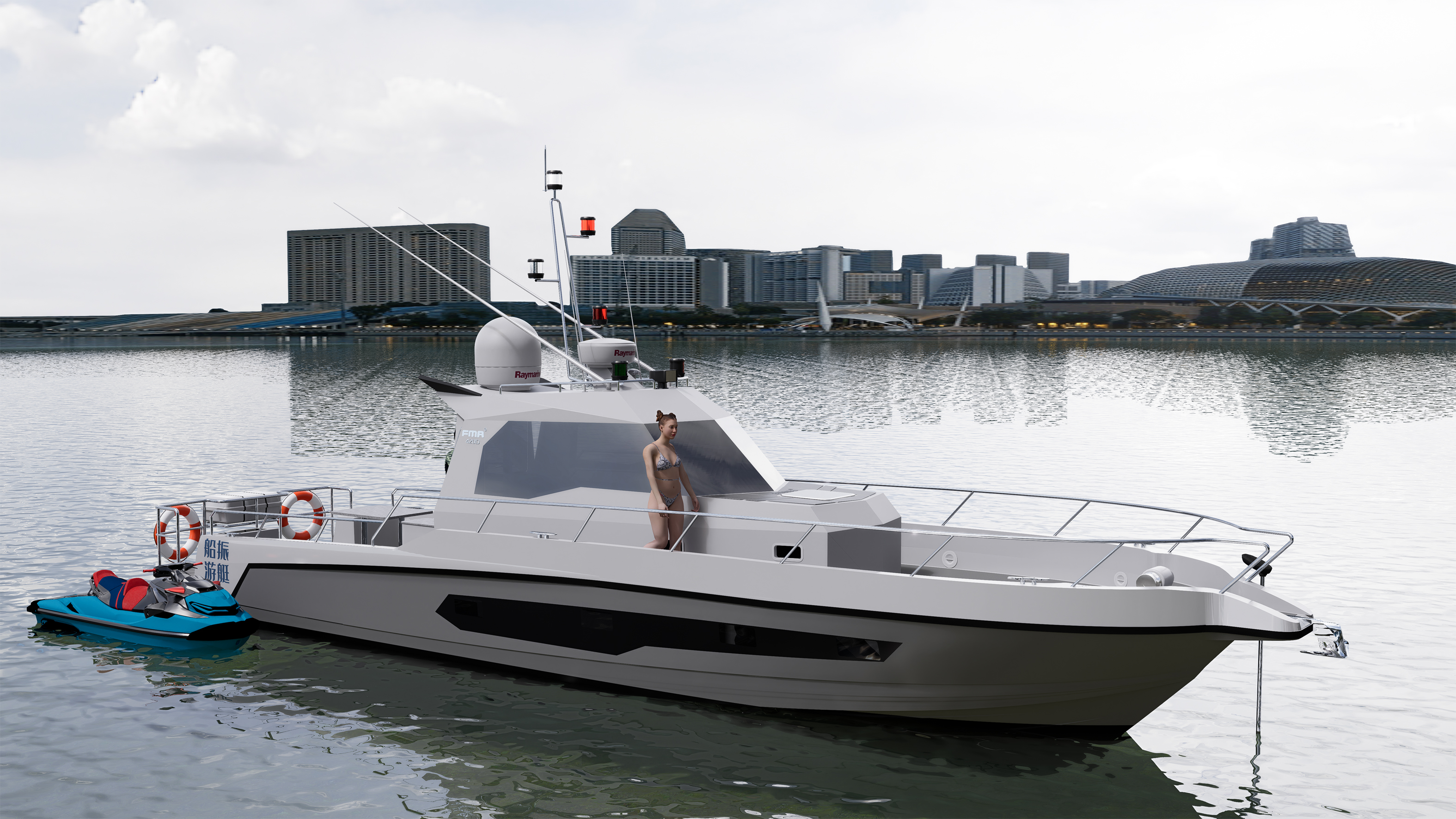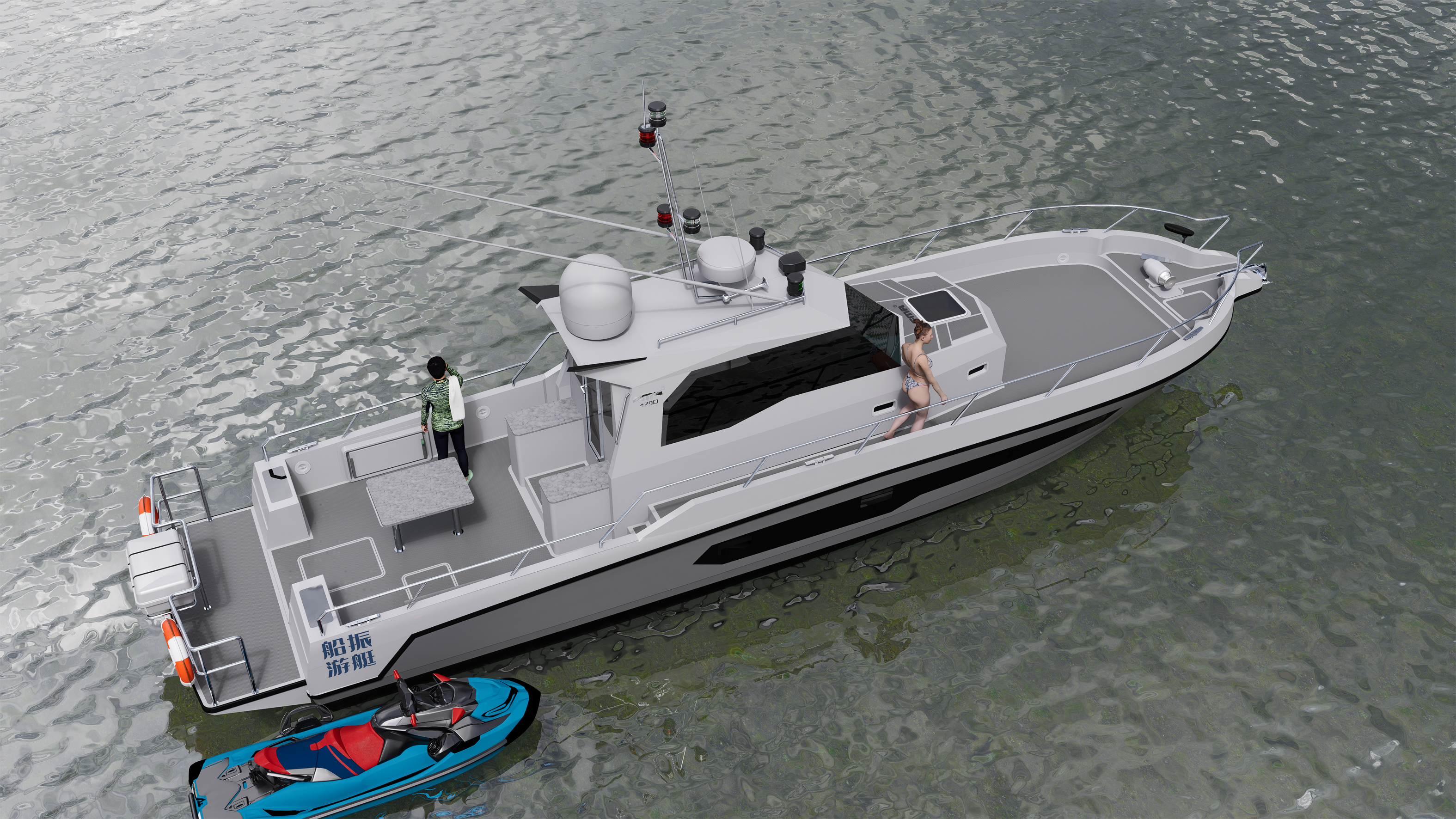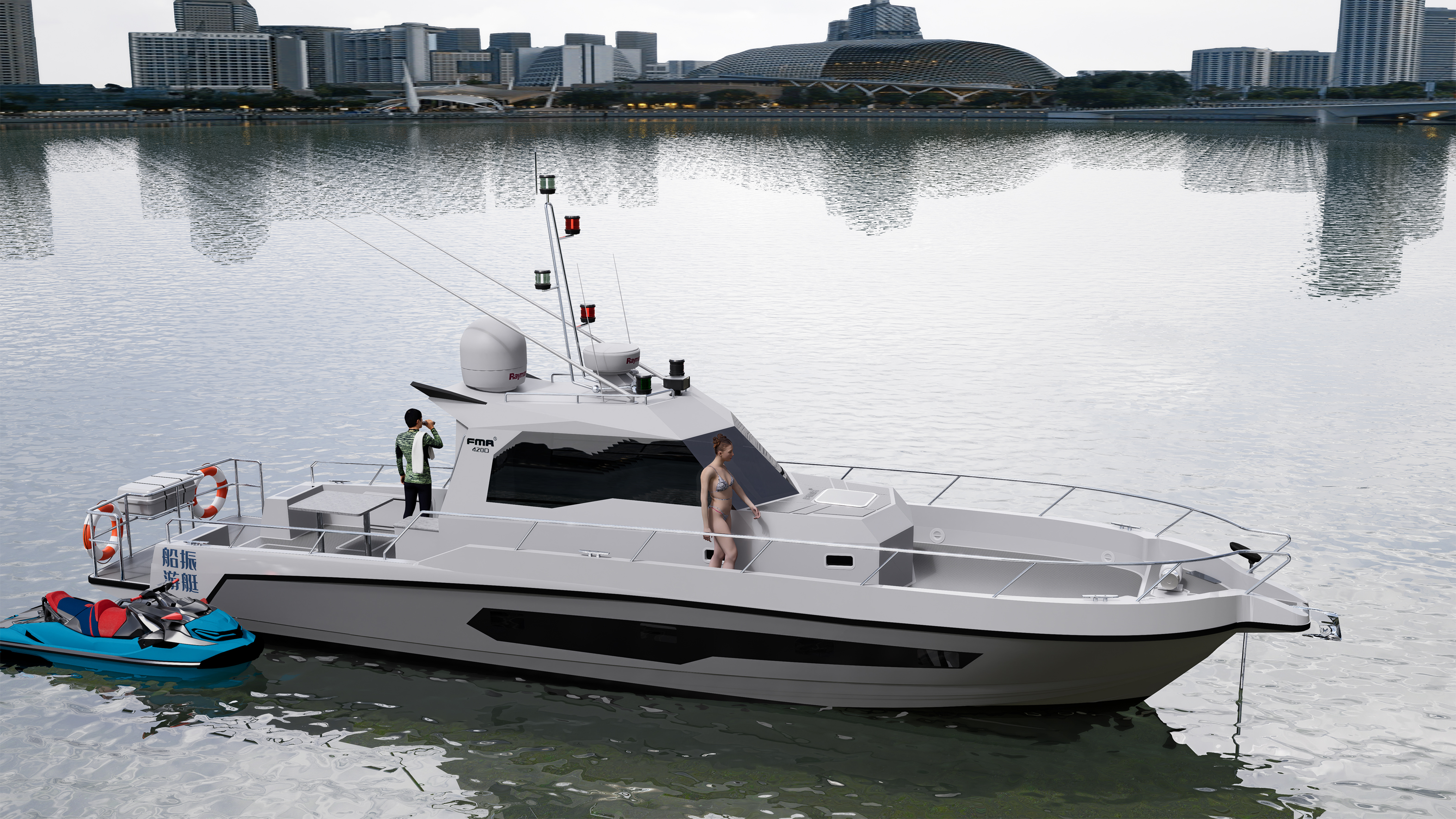 The FMA420D is a CCS Category II yacht, 12.8 meters long (13.8 meters including the transom), 3.2 meters wide, and equipped with a 1,400-liter fuel tank, a 500-liter water tank, and twin imported Yanmar 250 inboard diesel engines, capable of speeds of approximately 26 knots. It features radar, depth sounder, fish finder, nautical charts, GPS, VHF, HF, AIS, wireless position-indicating beacon, radar transponder, a 6kW marine water-cooled generator, air conditioning, emergency power supply, electric winch, two live bait and fish hold compartments, an external kitchen cabinet, eight single beds, and a 12-person liferaft.