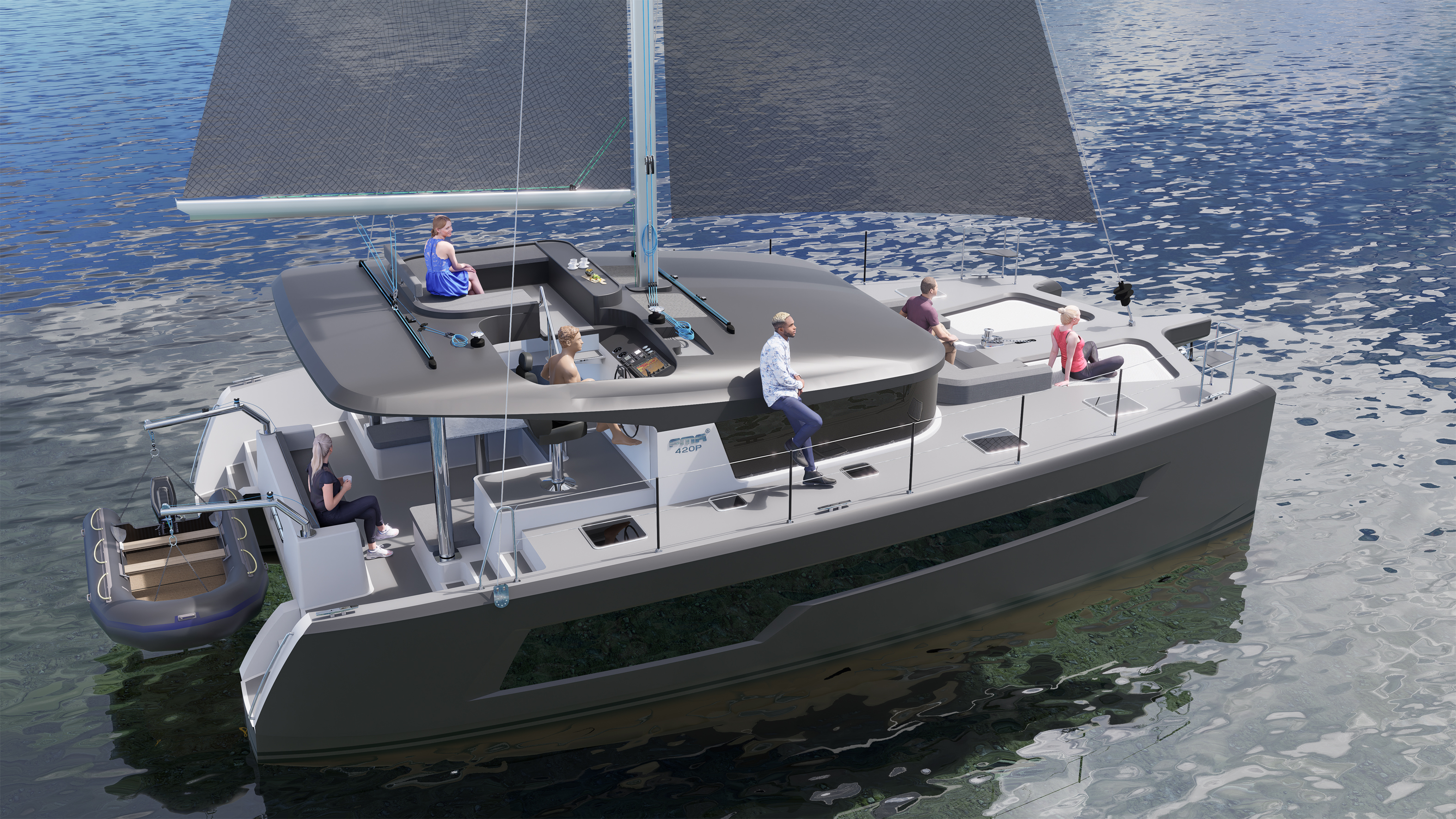 The FMA420S is a CCS Category III sailboat, 12.6 meters long and 6.8 meters wide. It features two 300-liter fuel tanks, two 350-liter water tanks, and two imported Yanmar 29-horsepower engines, capable of approximately 6 knots on engine power. The mast is 13.8 meters tall, with a mainsail area of 45 square meters and a foresail area of 32 square meters. It is equipped with radar, depth sounder, fish finder, nautical chart, GPS, VHF, AIS, radio position-indicating beacon, radar transponder, professional sailing instruments, a generator, and can be converted into four cabins with two berths for sailors. It also has two bathrooms, a sofa and dining area on the aft deck, a sofa on the flybridge, a sofa area and bow net on the bow, and a 12-person liferaft.